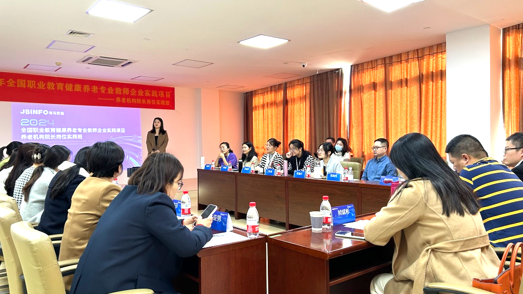 陈少清教授为老师们上了开班第一课。他提出我国现状养老模式为9631,距离9073(即居家养老90%,社区养老7%,机构养老3%)仍有差距。养老行业人才培养正面临4大挑战:“需求量大,人才供给不足;认可度低,职业吸引力不强;水平不高,缺乏专业化与职业化;招生困难,培养体系薄弱”,同时陈少清教授从政策保障、职业吸引力、教育质量提升、社会荣誉等方面论述了相关的解决思路。针对产教融合,陈少清教授与老师们就“如何以教师企业实践基地为平台和契机加大产教融合,建立产业和教育双向驱动机制、建立校企合作机制”,“如何实施‘双师制’教学”等话题,进行了探讨交流。